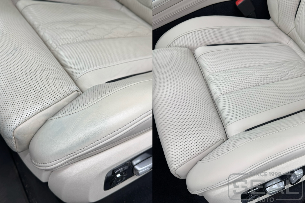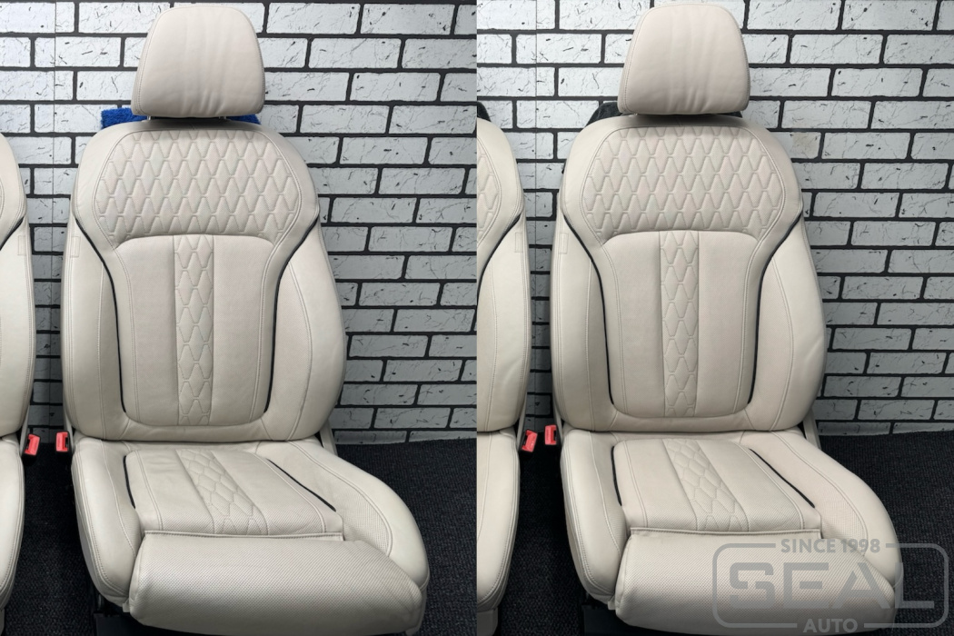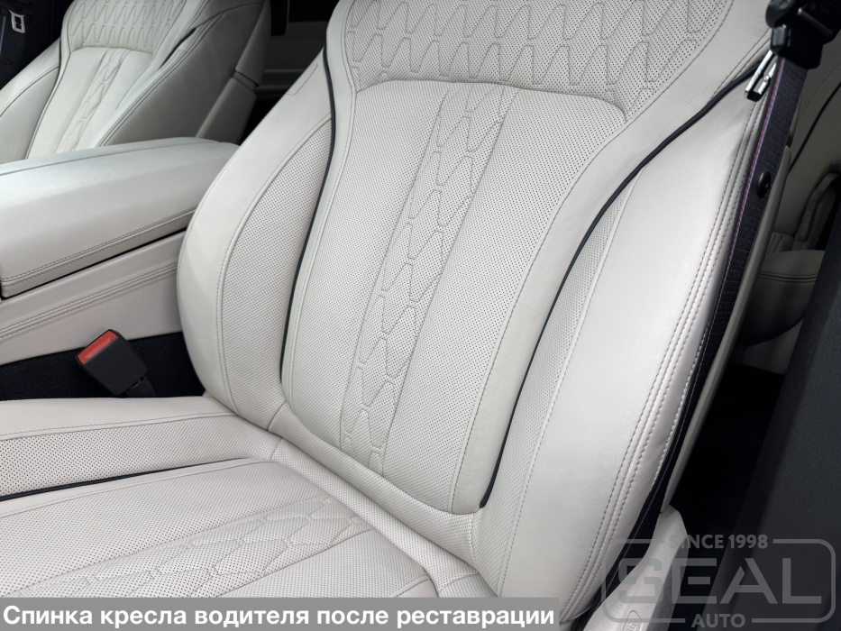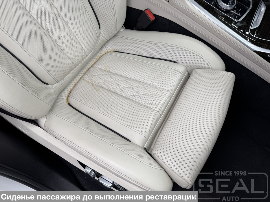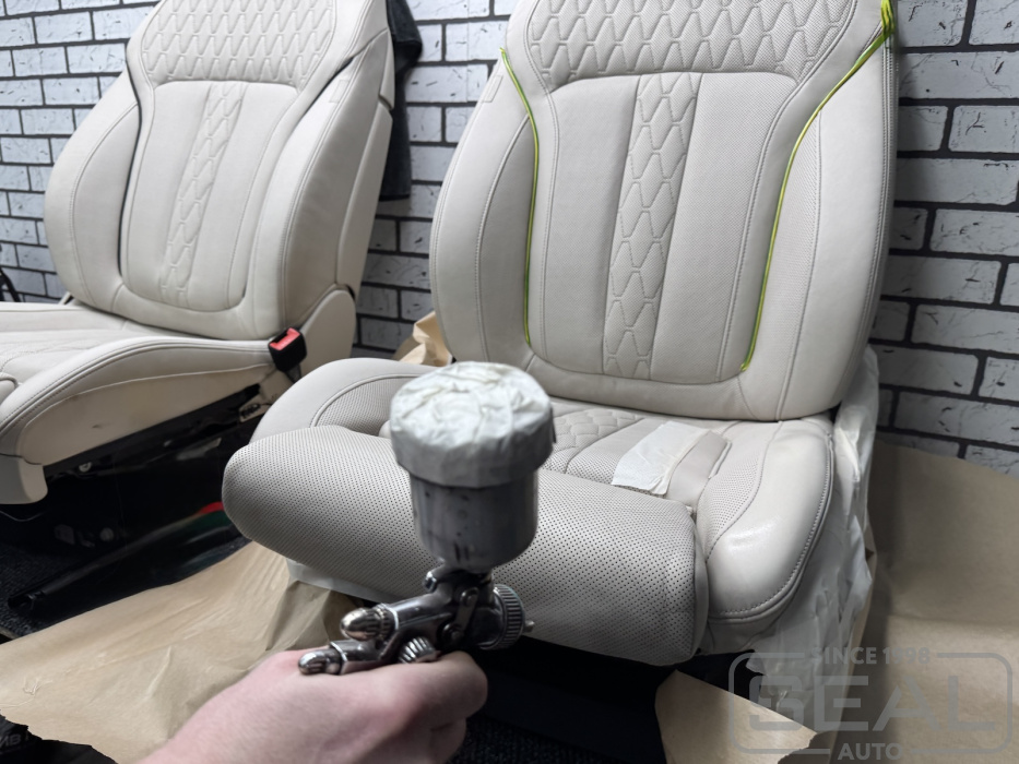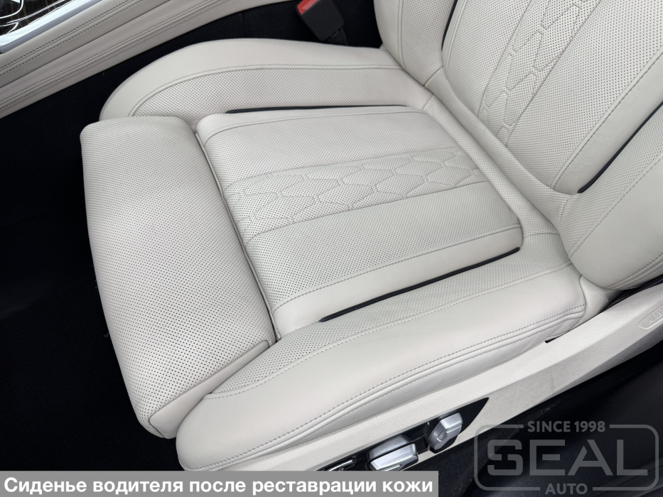 Реставрация кожи на передних сидениях автомобиля BMW X7.