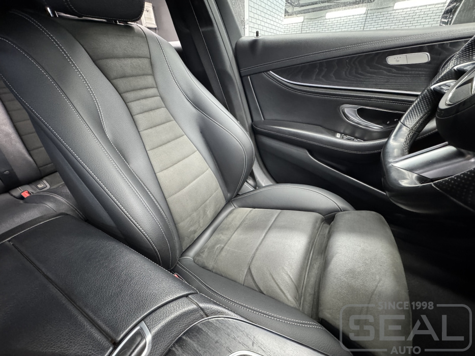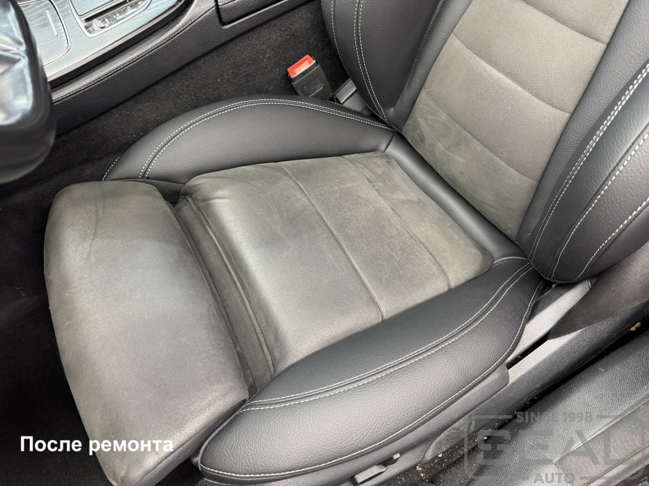 Работа по ремонту кожи кресел водителя и пассажирского в автомобиле Мерседес Е-класс 213 кузов.