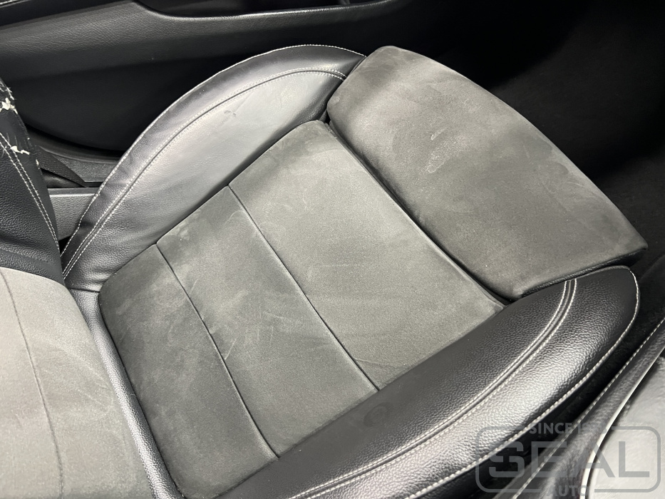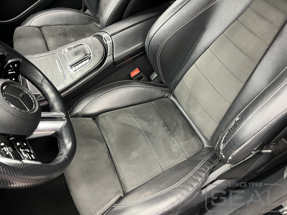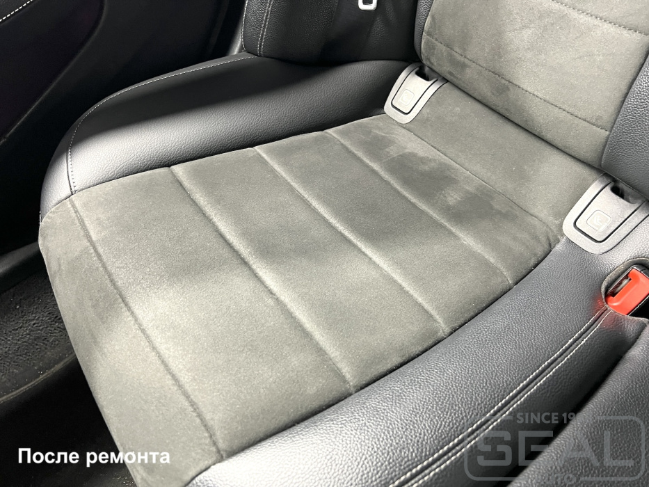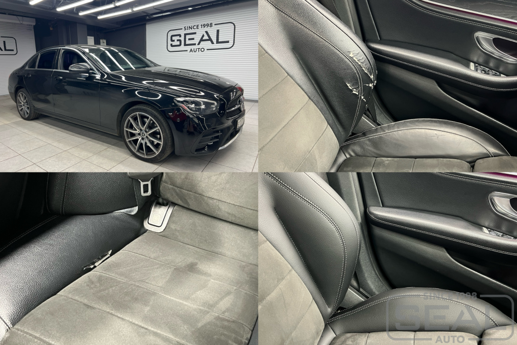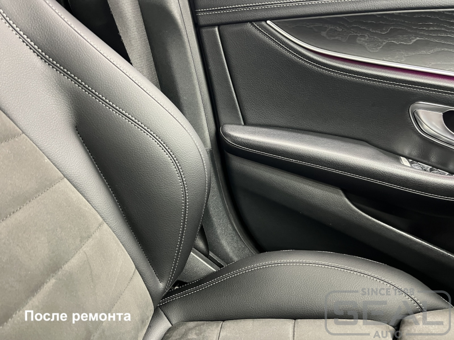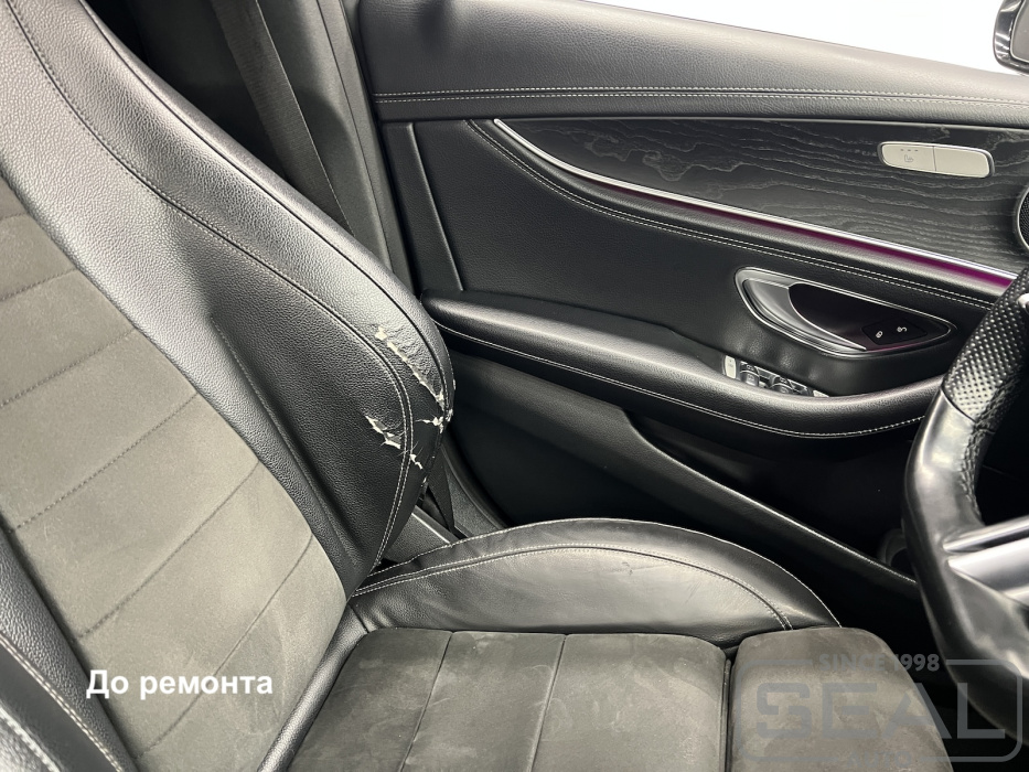 Работа по ремонту кожи водительского и пассажирского кресел в автомобиле Мерседес Е-класс (213 кузов).