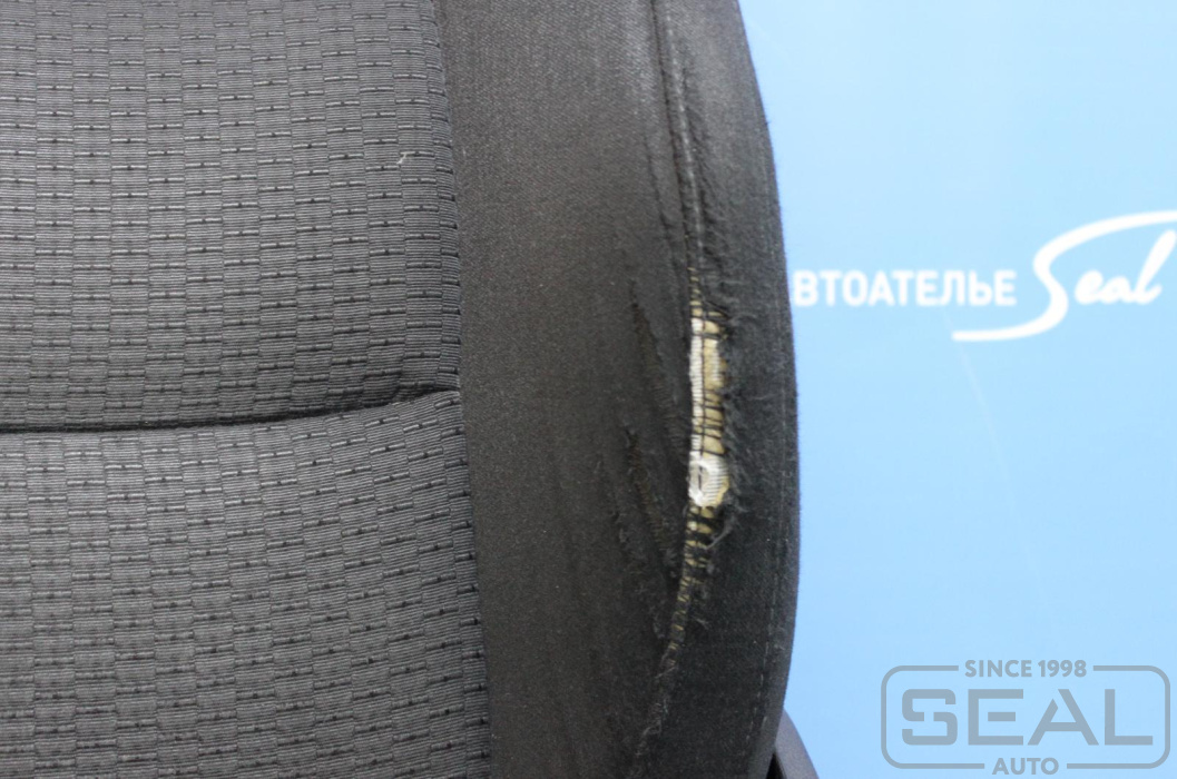 восстановление формы сидения и замена 2-х элементов ткани (оригинал),