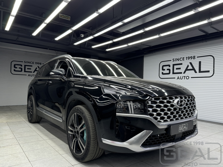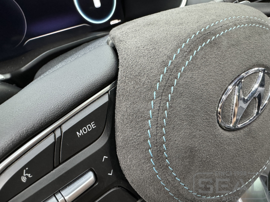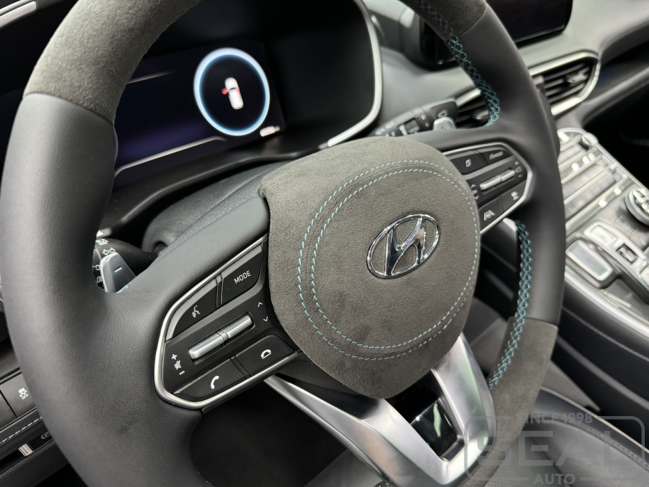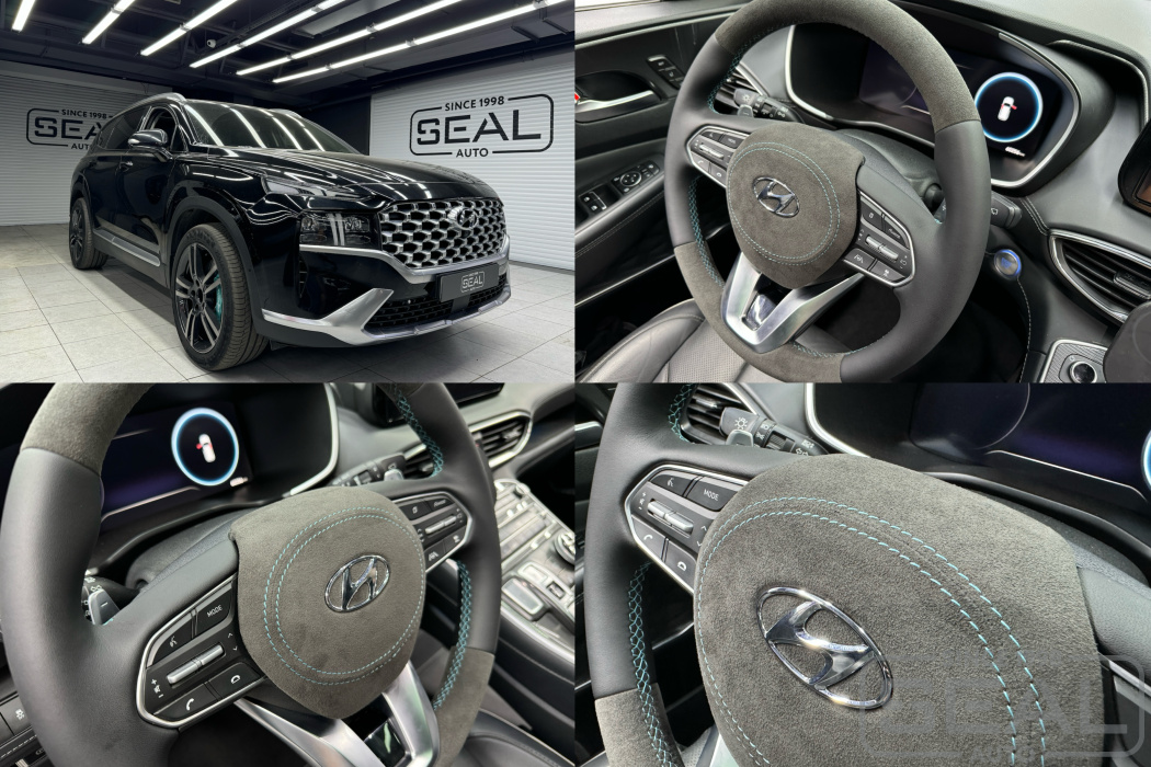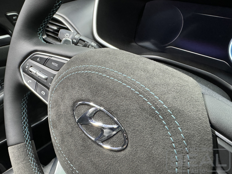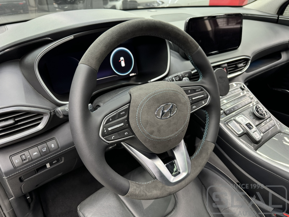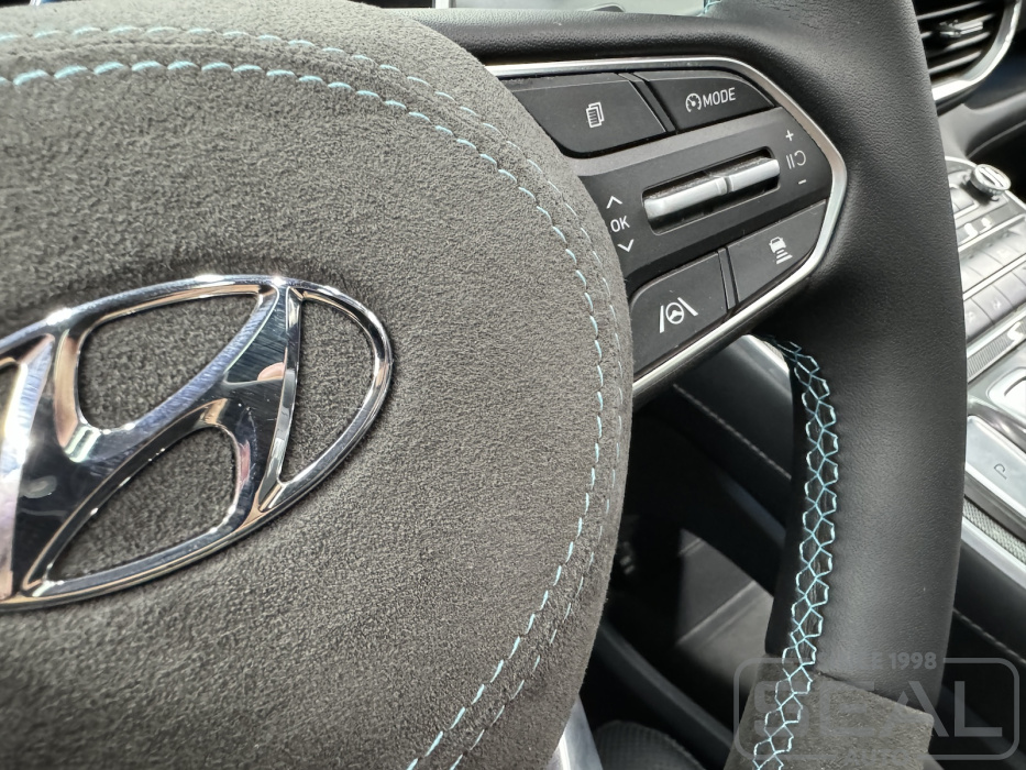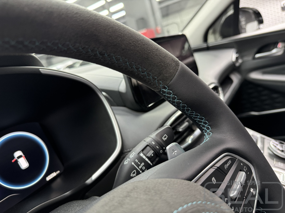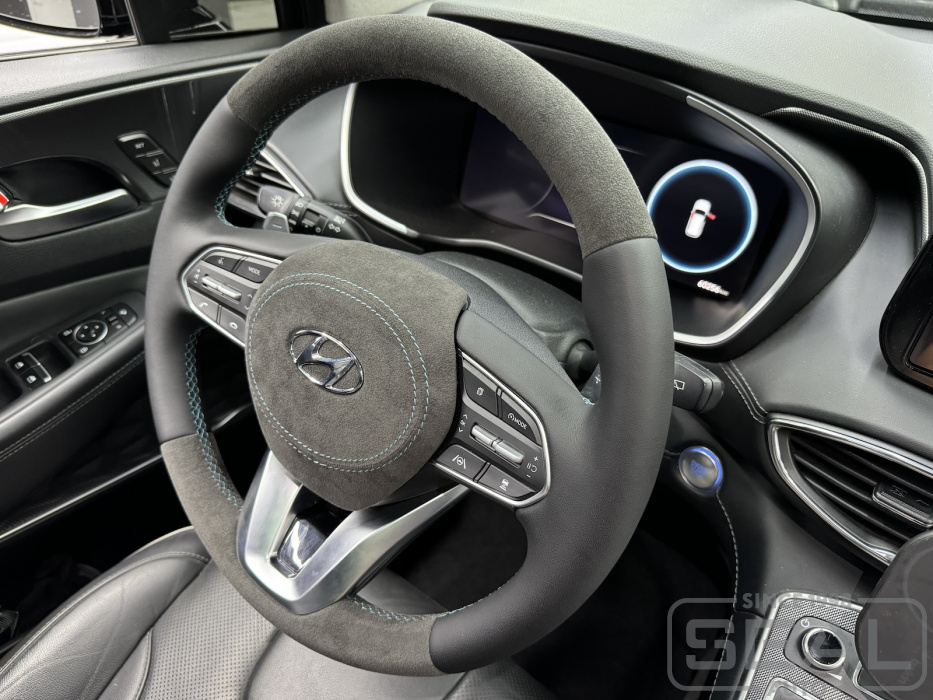Услуга по перетяжке руля и клаксона из Алькантары для Хендай Санта Фе.