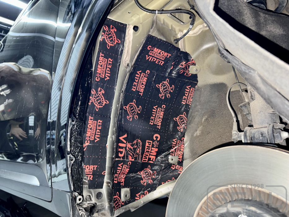 Дополнительно были выполнены работы по шумоизоляции колесных арок снаружи.