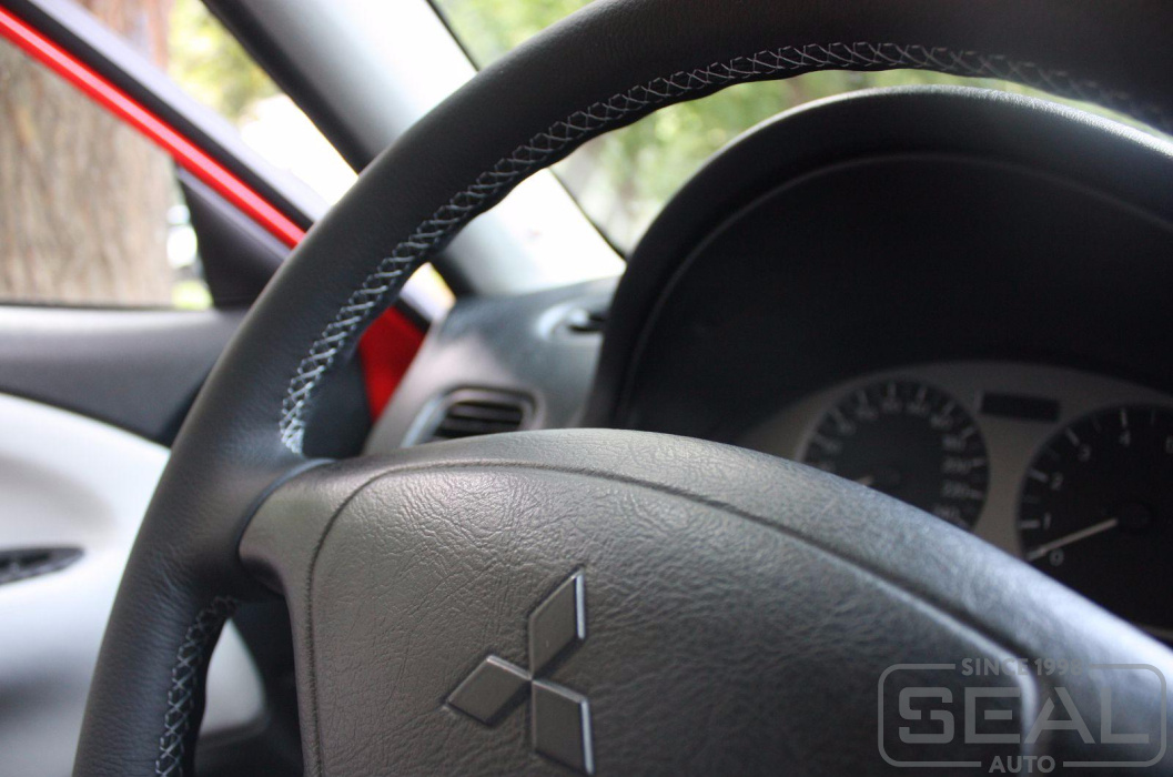 Перетяжка кожей руля на автомобиль Митсубиси Каризма.