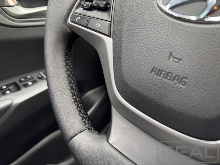 Работа по перетяжке руля автомобиля Хендай Солярис.