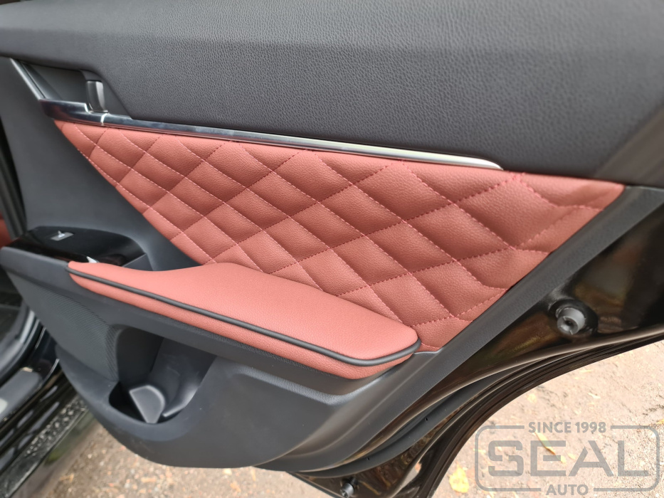 Перетяжка дверных карт и подлокотников (8 элементов) - 44.000 рублей.