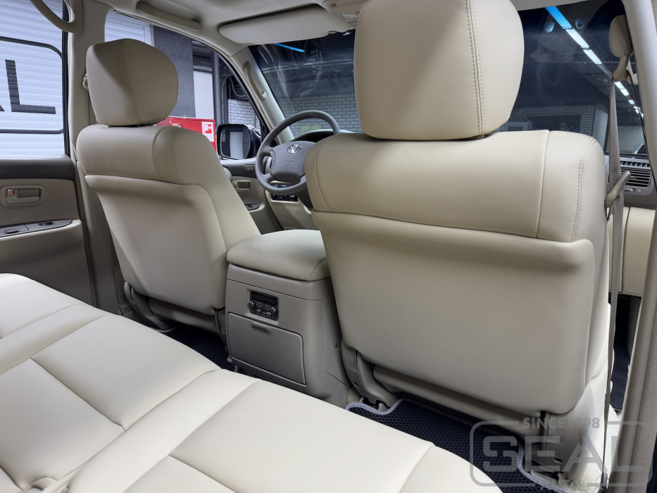 Перетяжка сидений (2 ряда), подголовников и переднего подлокотника - 89.000 рублей.