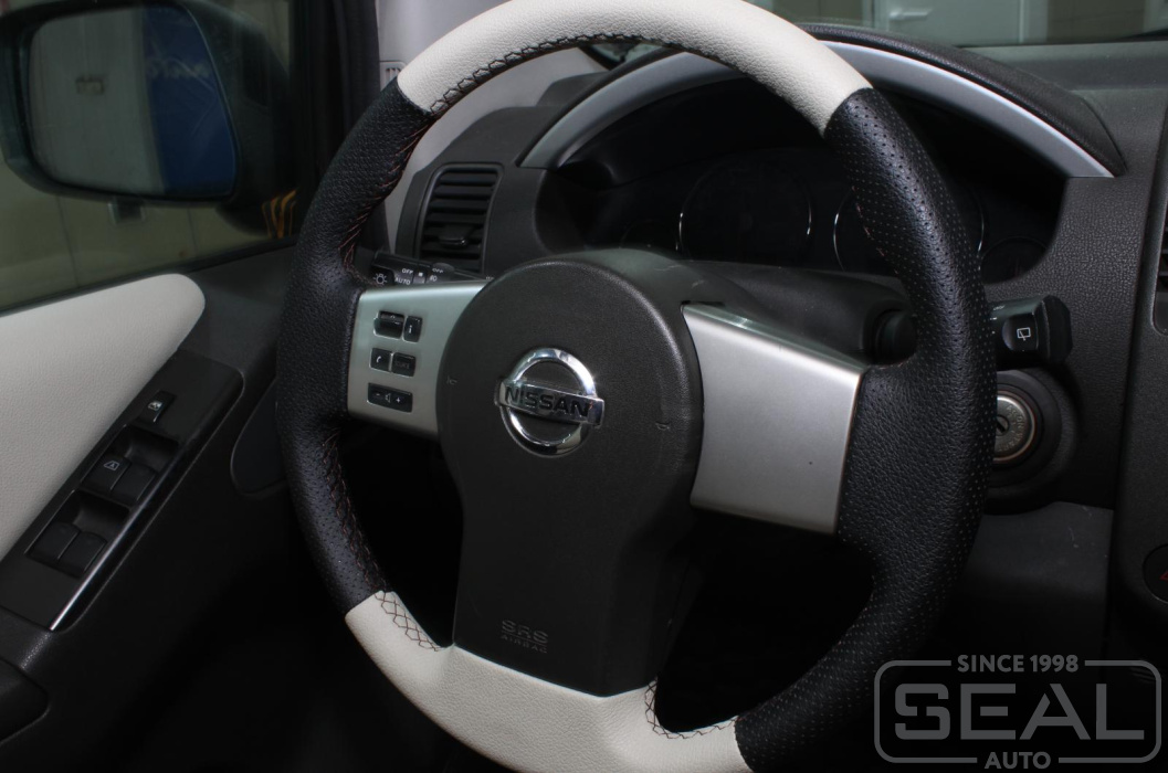 Услуга по перетяжке руля, ручки и чехла кпп для автомобиля Ниссан Патфайндер 2-е поколение.