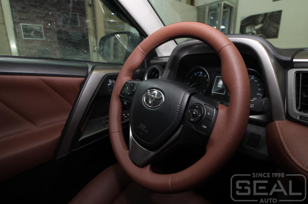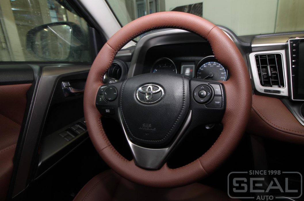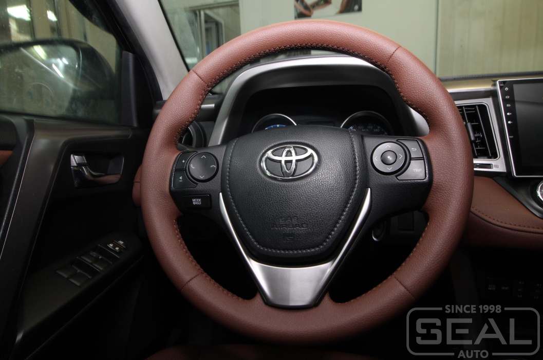 Работа по перетяжке руля, ручки кпп и ручного тормоза Тойота Рав 4 (4-е поколение).