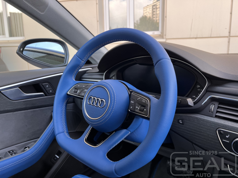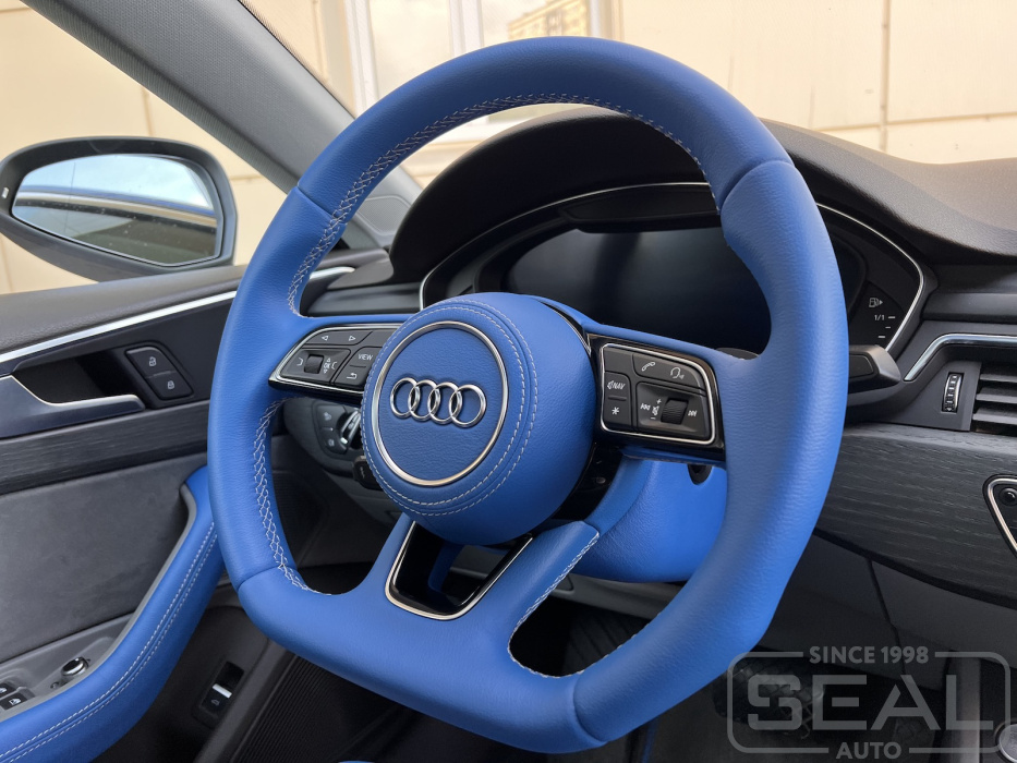 Audi A5 Перетяжка руля, клаксона, кожуха и ручки кпп