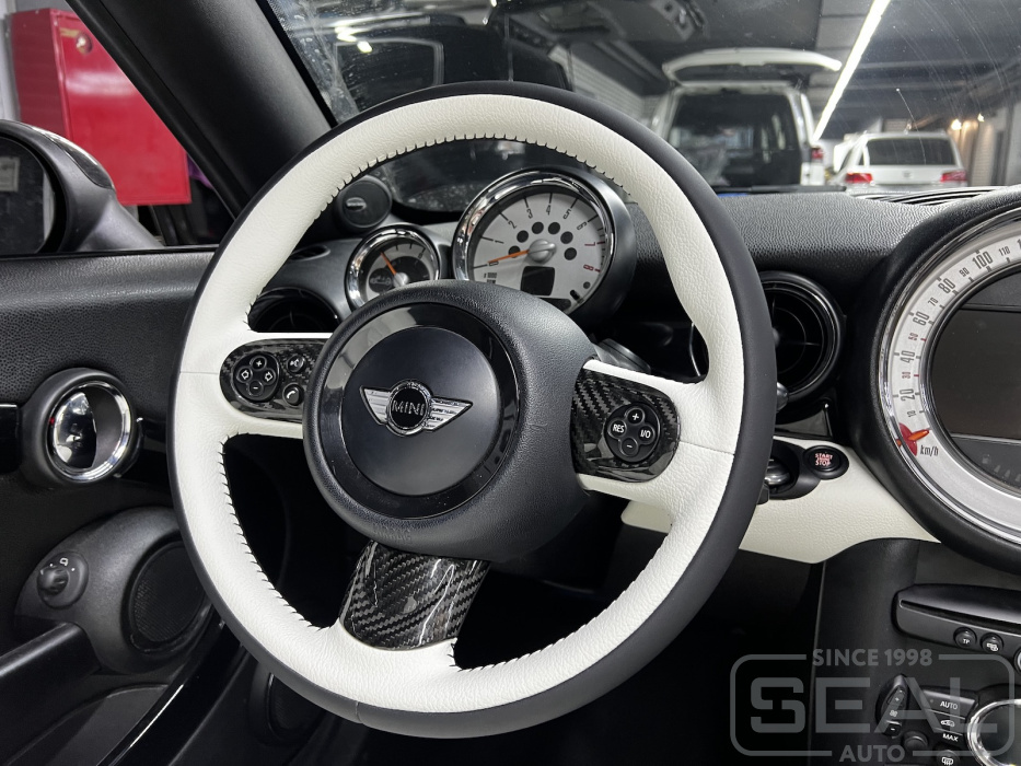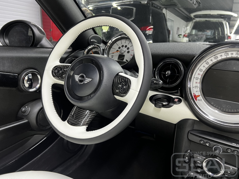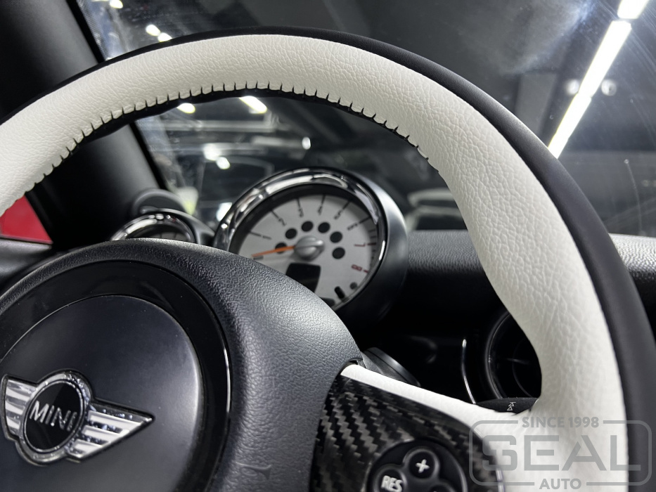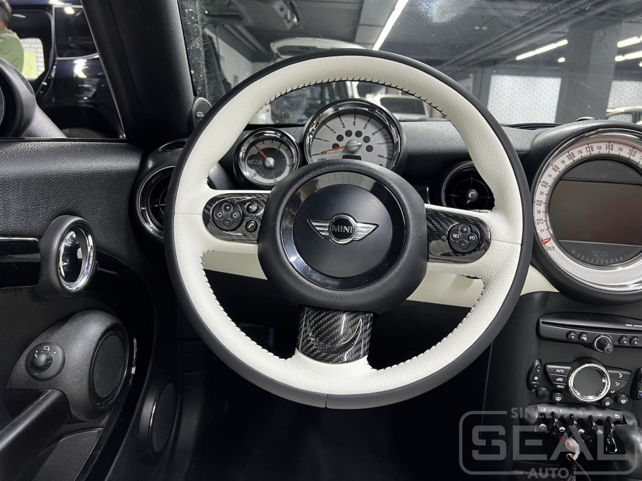 Услуга по перетяжке руля и ручки кпп для автомобиля Mini Roadster Cooper S.