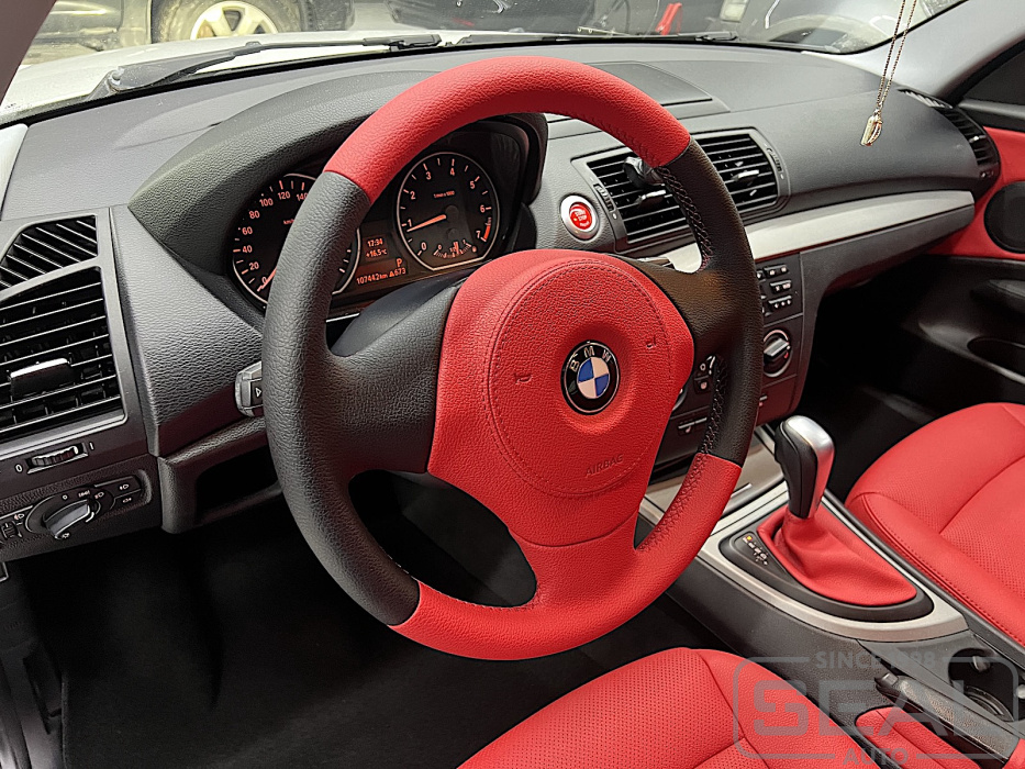 Услуга по перетяжке руля, клаксона и чехлов кпп для БМВ 1-й серии (кузов E82).