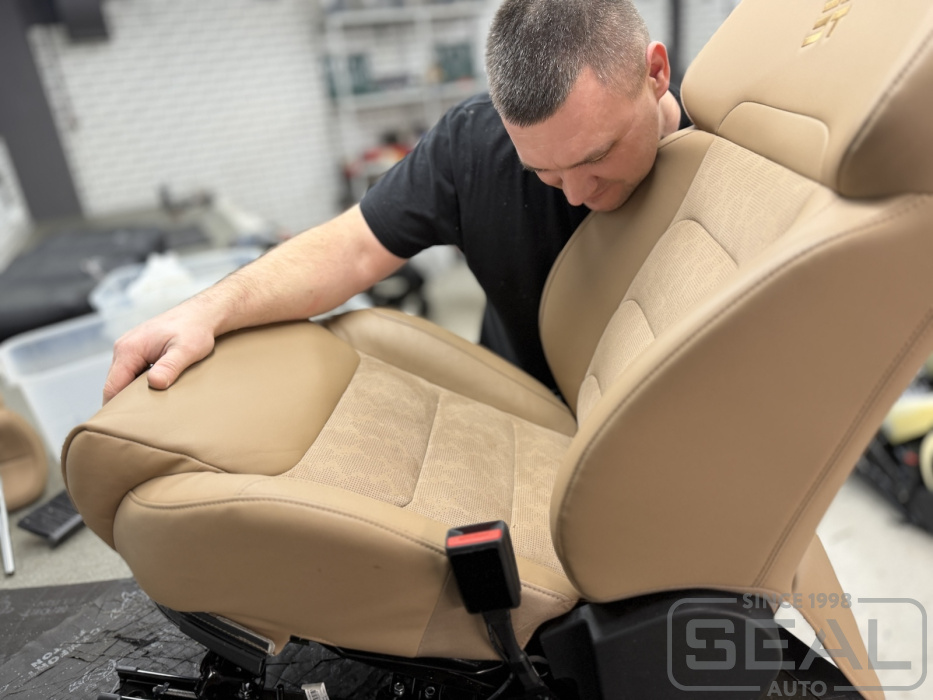 Услуга выполнялась с частичным перешивом обивок передних сидений.