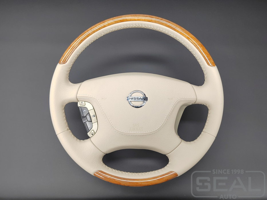 Услуга по перетяжке руля кожей с установкой подогрева для Ниссан Цедрик.