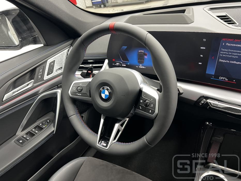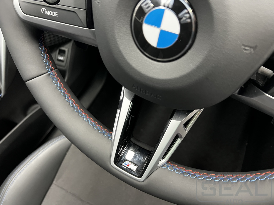 Перетяжка рулевого колеса выполнена с меткой и в стиле "M-серия".