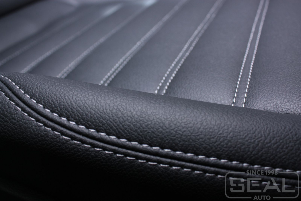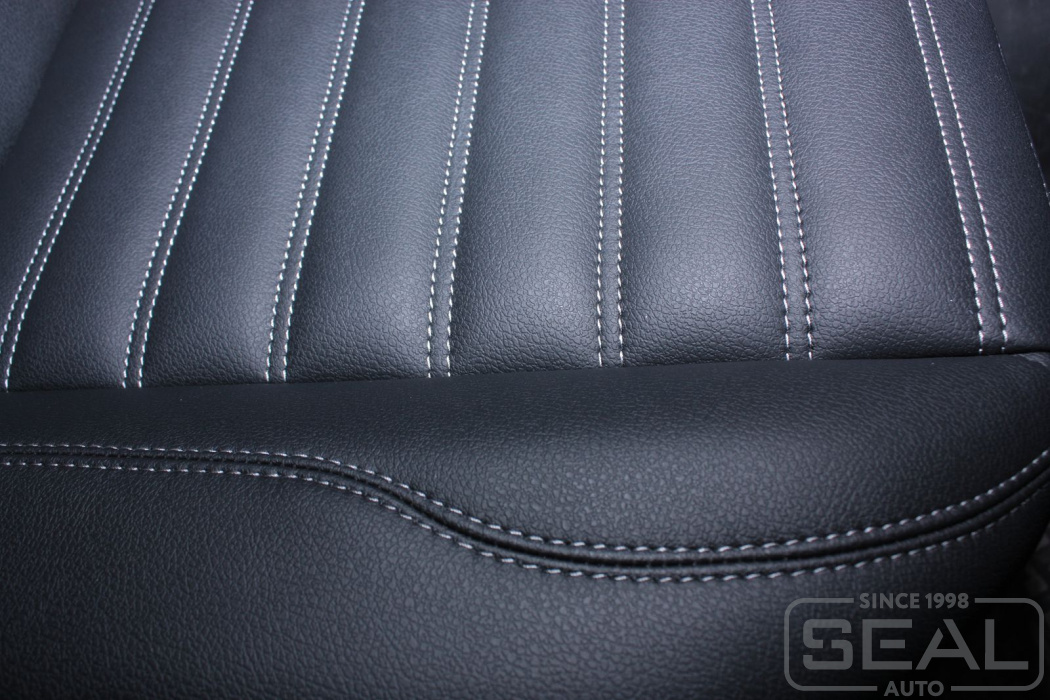 Перетяжка кожей сидений, всех подголовников и переднего подлокотника - 80.000 рублей.