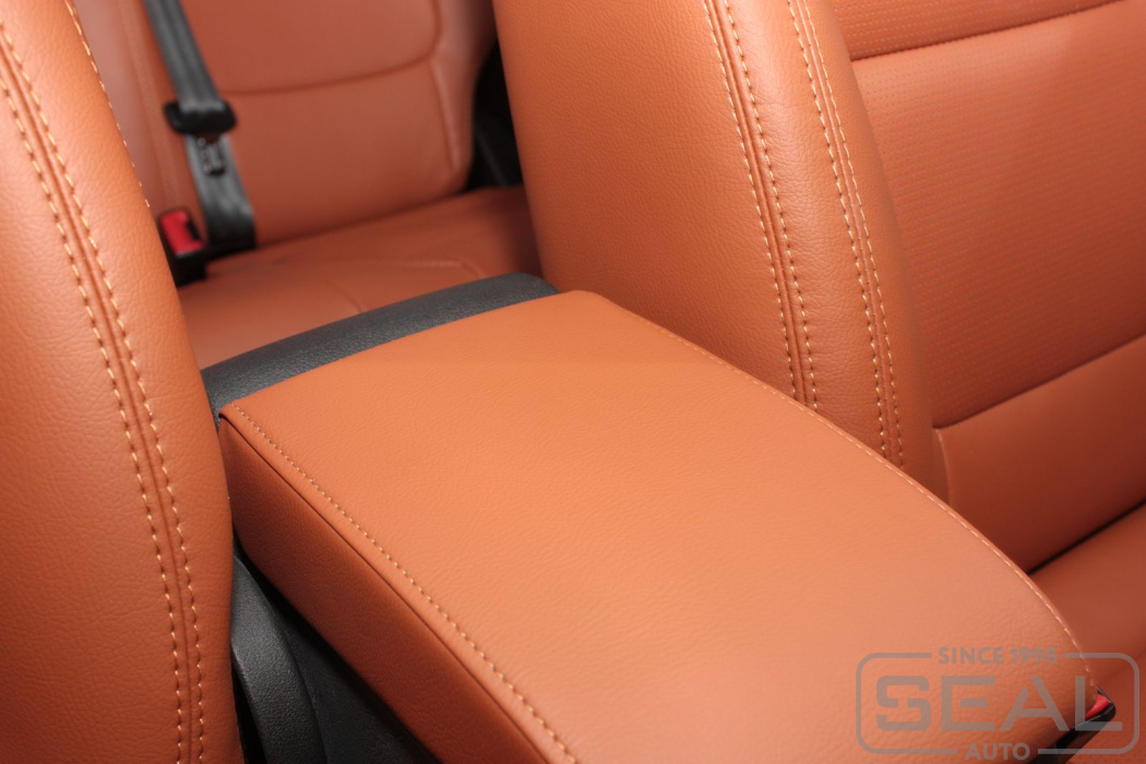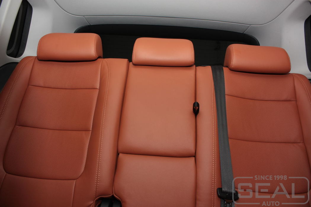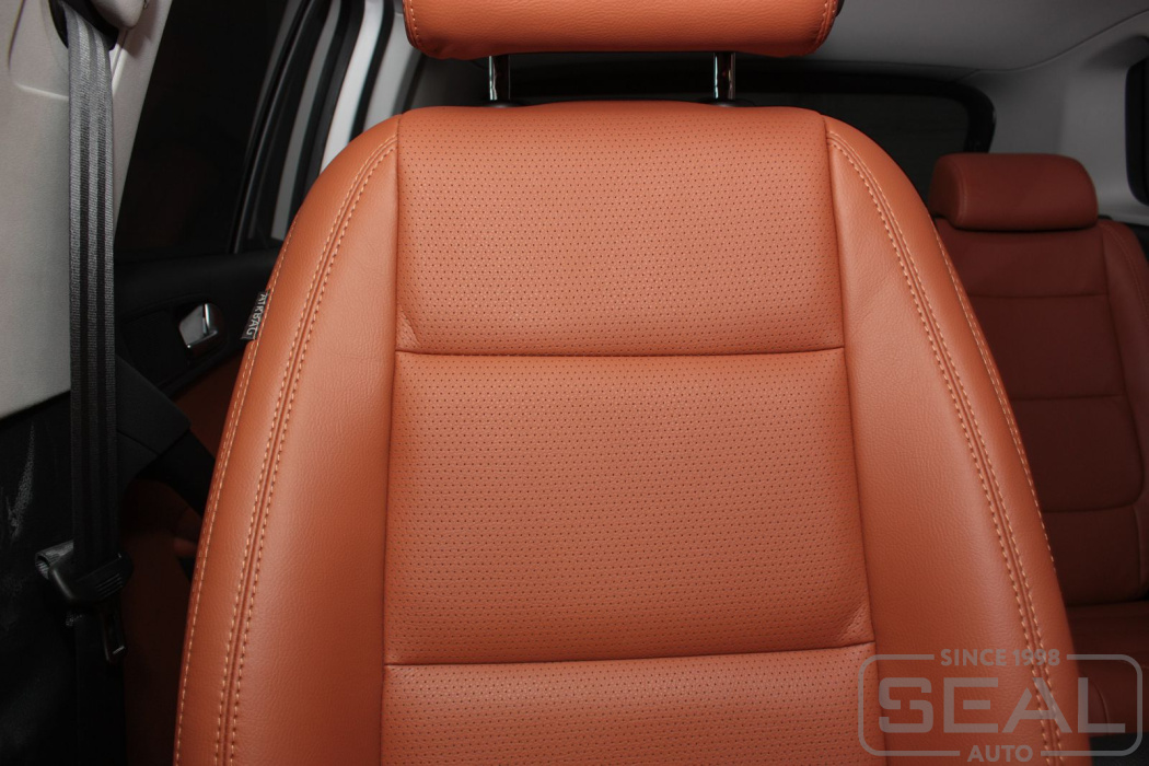 Перетяжка кожей сидений, всех подголовников и переднего подлокотника - 82.000 рублей.